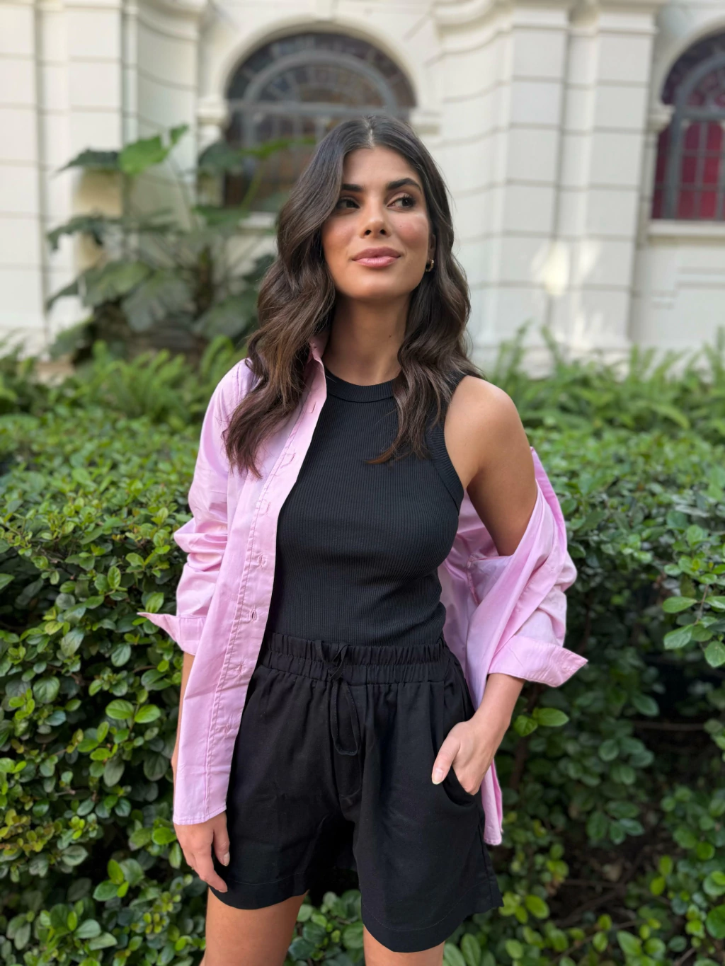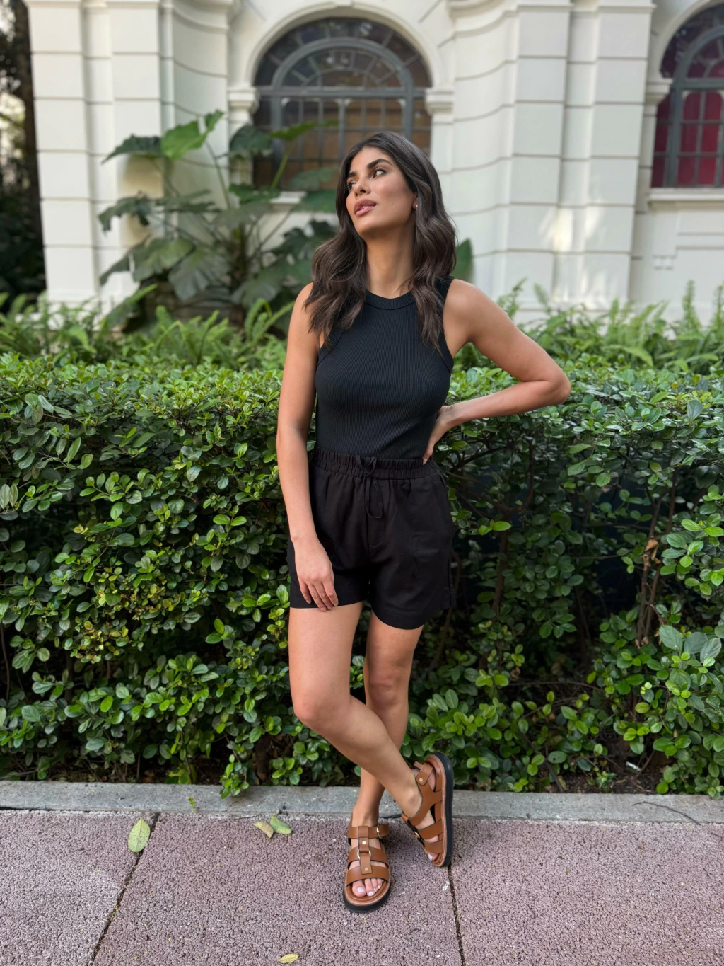 Regata em malha de algodão canelada, com decote nadador, justa ao corpo.